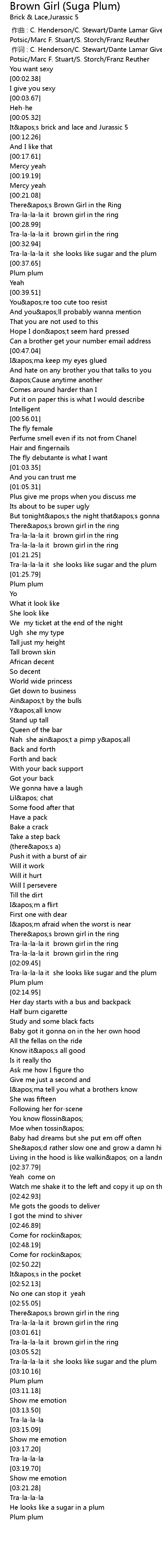 | [02:01.78] | Tra-la-la-la it brown girl in the ring |