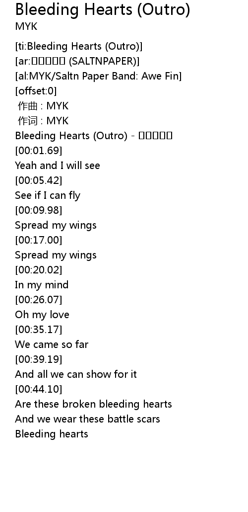 | [00:00.02] | Bleeding Hearts (Outro) - 솔튼페이퍼 |