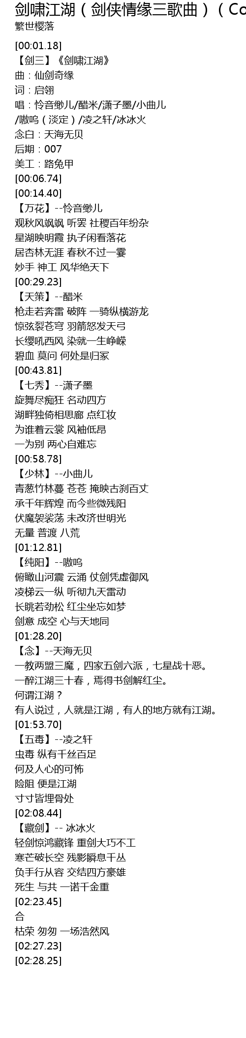 | [00:01.59] | 【剑三】《剑啸江湖》 |