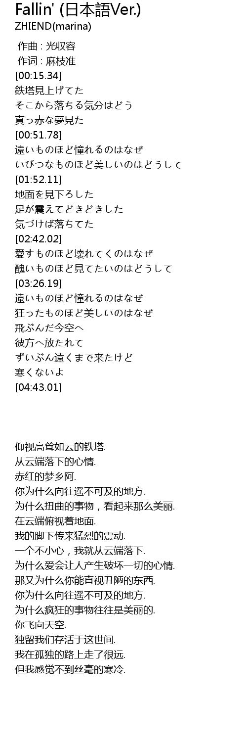 Fallin' ri ben yu Ver. Lyrics