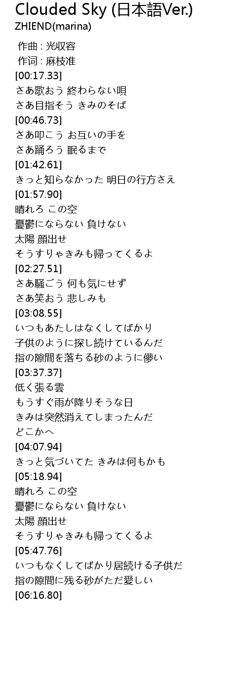 Clouded Sky ri ben yu Ver. Lyrics