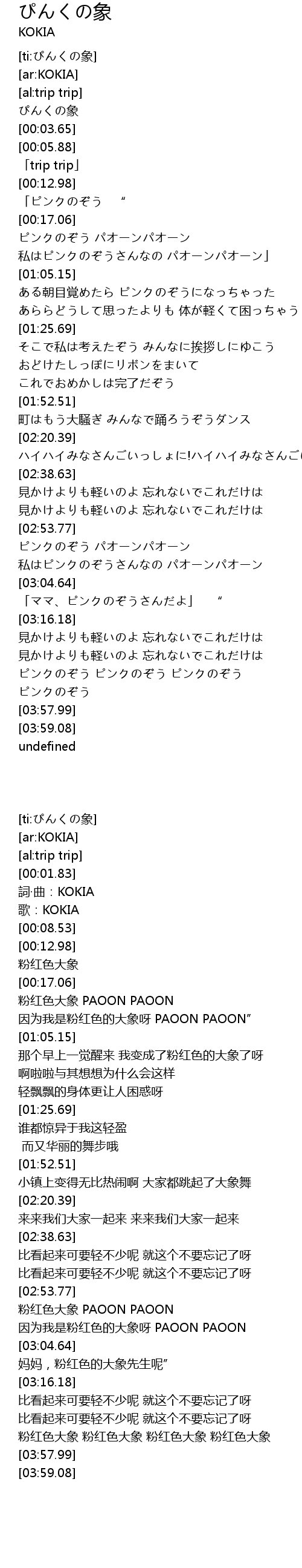 | [02:54.24] | ピンクのぞう パオーンパオーン |