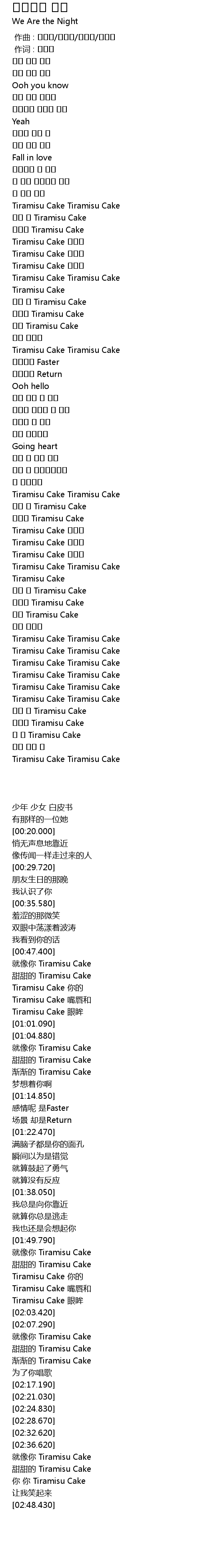 | [02:39.810] | 마치 넌 Tiramisu Cake |