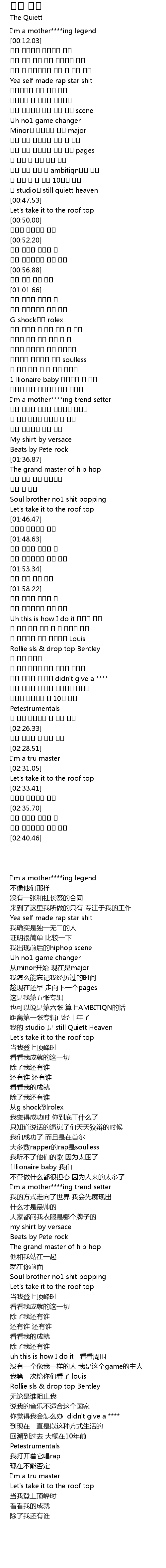 | [00:45.33] | 내 studio는 still quiett heaven |