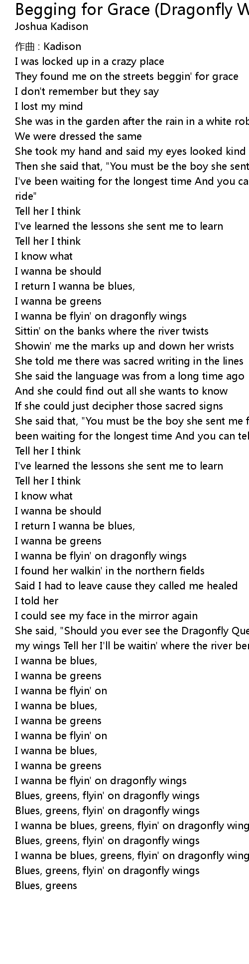 | Song | Begging for Grace (Dragonfly Wings) |