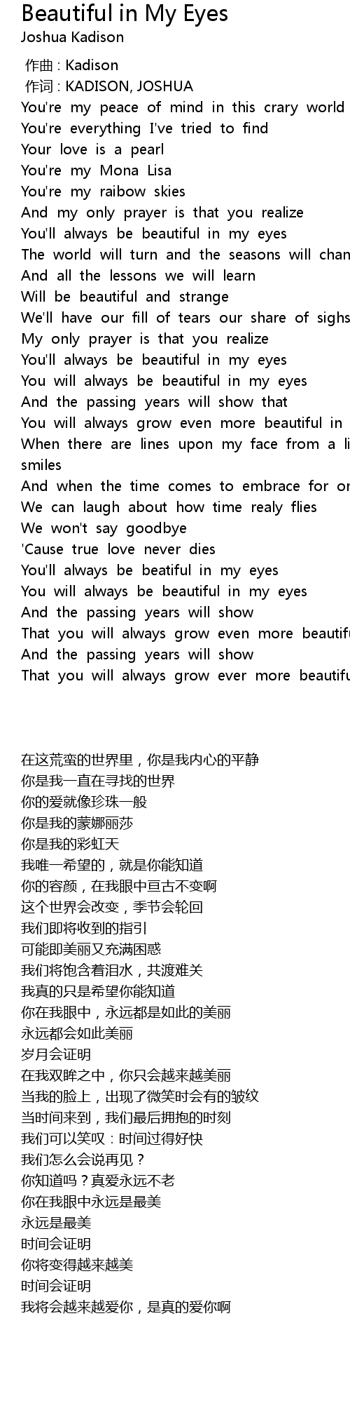 | [03:01.762] | You'll always be beatiful in my eyes |