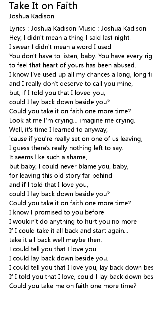 | Lyrics: Joshua Kadison Music: Joshua Kadison | |