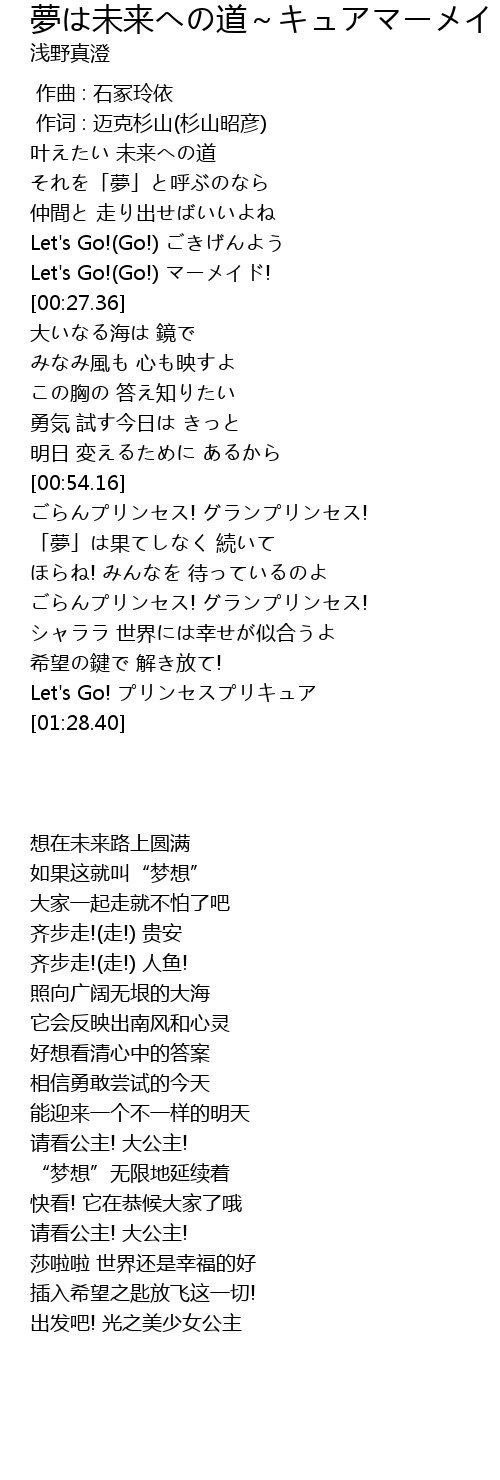 | [00:09.28] | 叶えたい 未来への道 |