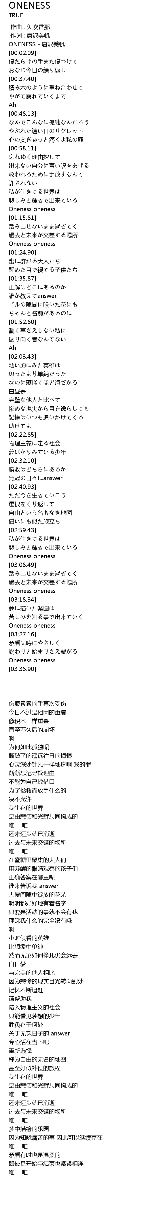 | [03:23.76] | Oneness oneness |