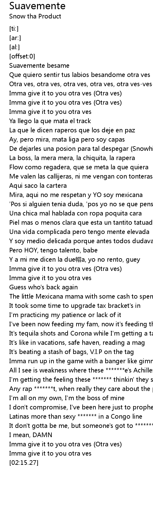 | [01:54.40] | Imma give it to you otra ves (Otra ves) |