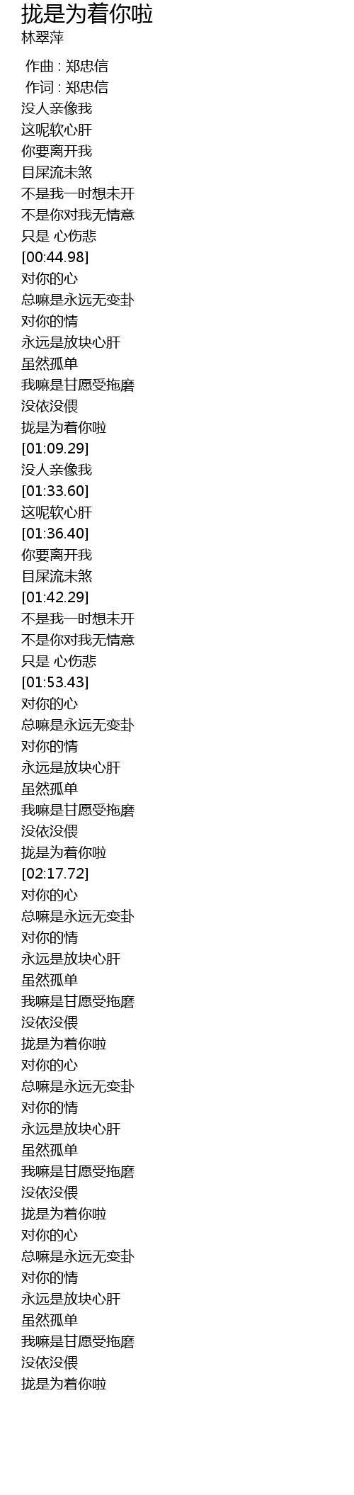 | [02:58.48] | lǒng shì wéi zhe nǐ la |