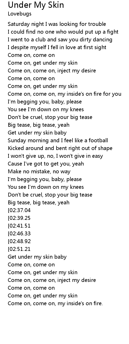 Come on, get under my skin |