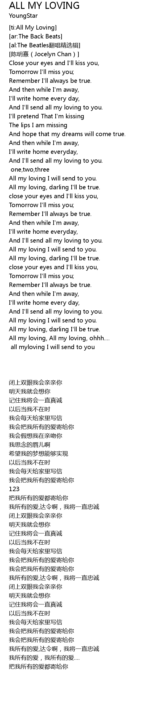 | [03:51.00] | All my loving, All my loving, ohhh.... |