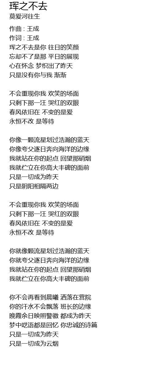 | Song | 珲之不去 |