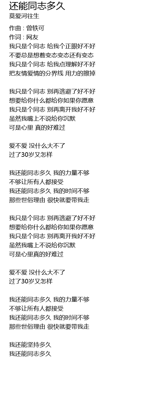 | 我还能同志多久 我的力量不够 | |