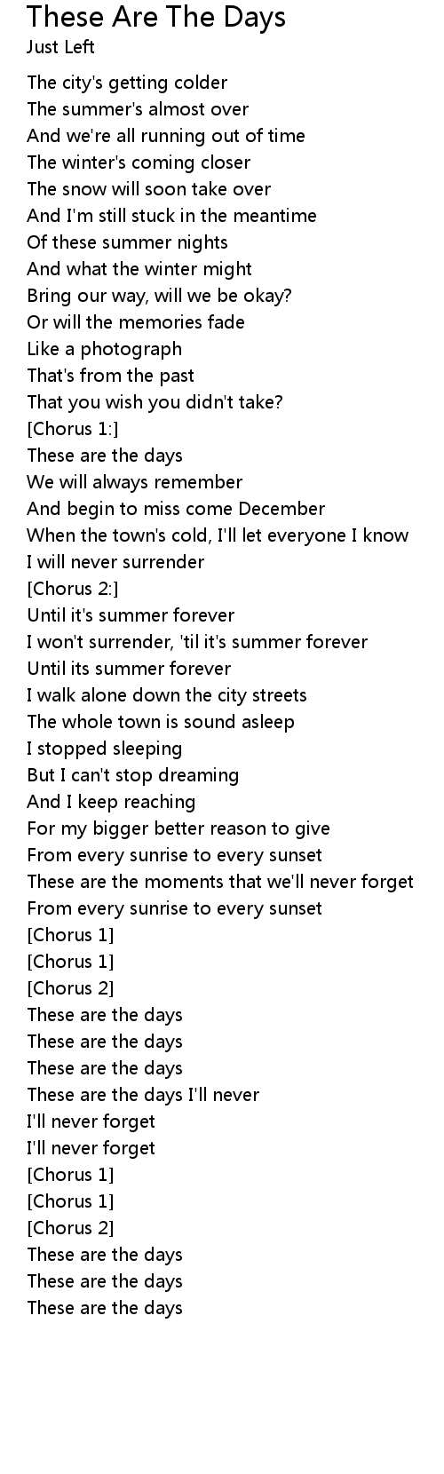 These are the days I'll never |