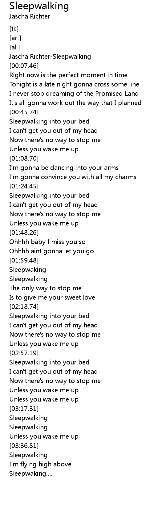 | [02:04.20] | Sleepwalking |