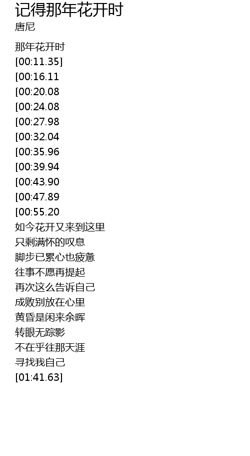 | [01:59.42][00:16.11] | nà nián huā kāi shí lái dào zhè lǐ |
