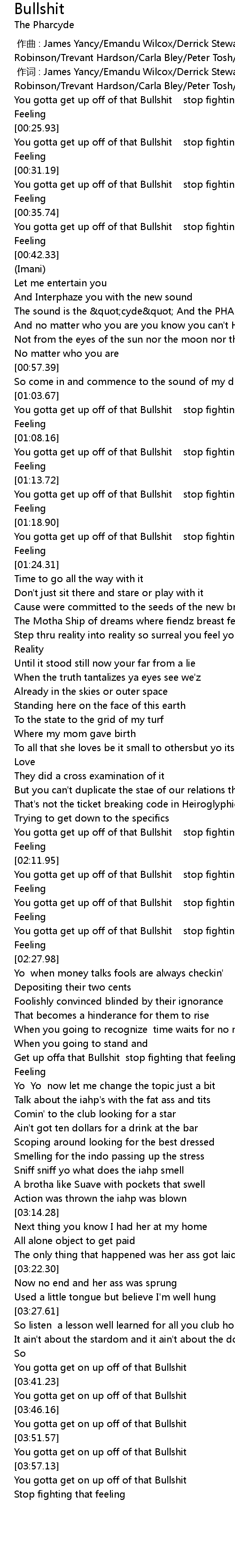 | [03:43.79] | You gotta get on up off of that Bullshit |