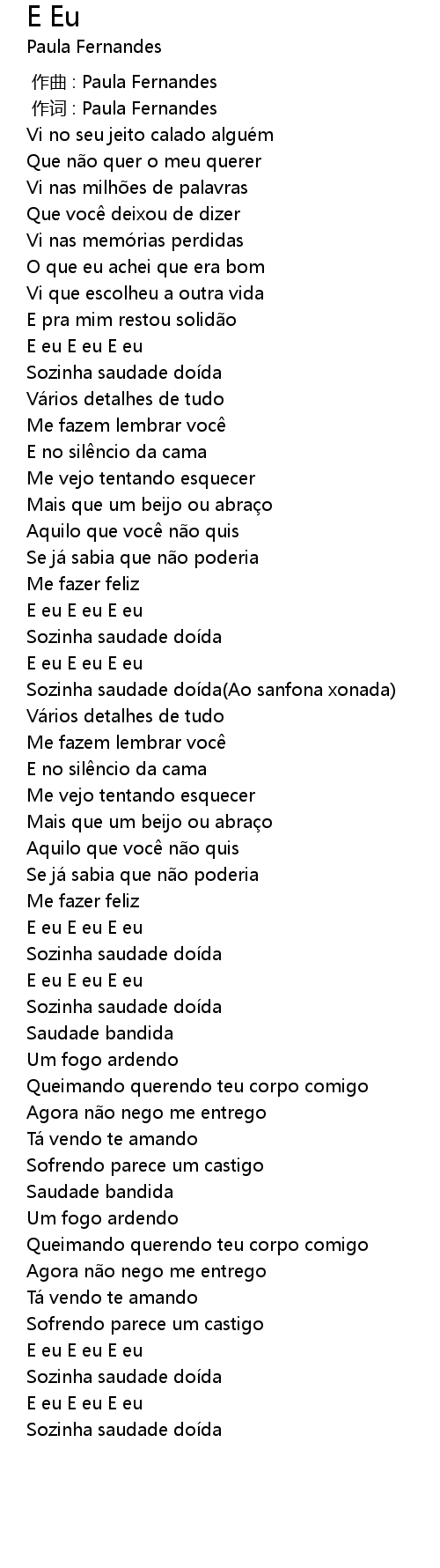 | [00:00.00] | 作曲 : Paula Fernandes |