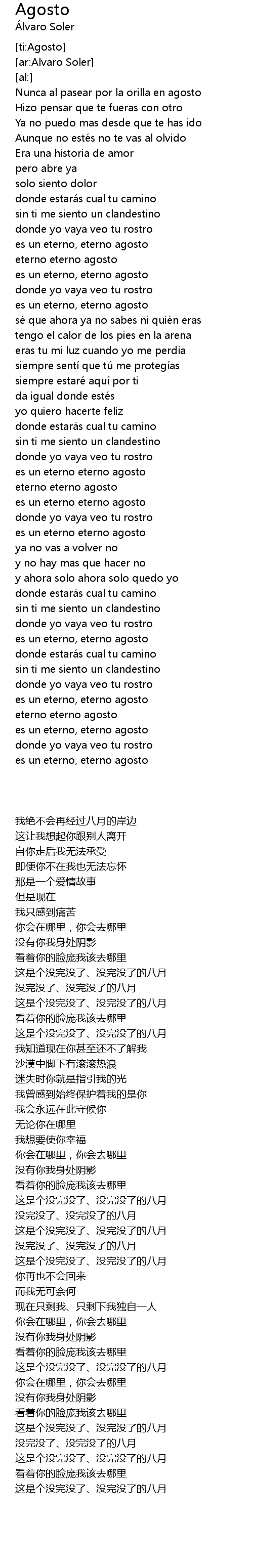 | [01:41.51] | es un eterno eterno agosto |
