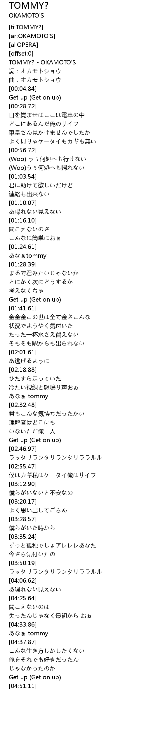 | [00:00.29] | TOMMY? - OKAMOTO'S |