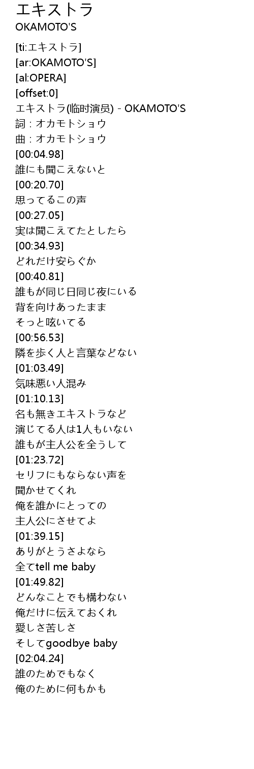| [00:00.82] | エキストラ(临时演员) - OKAMOTO'S |