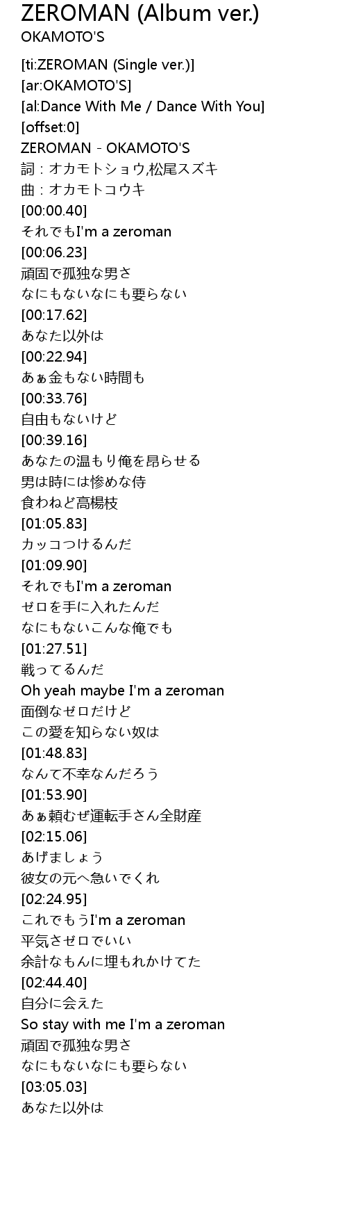 | [00:00.10] | ZEROMAN - OKAMOTO'S |