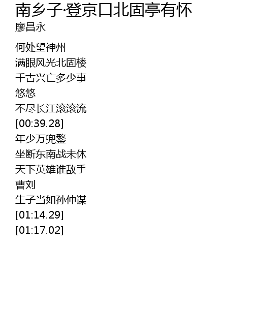 | [00:13.52] | mǎn yǎn fēng guāng běi gù lóu |