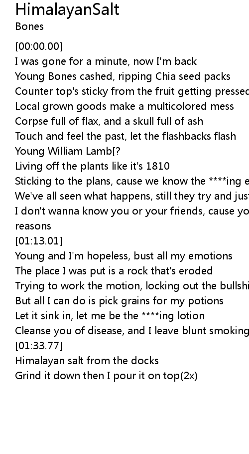 | [00:36.57] | Young Bones cashed, ripping Chia seed packs |