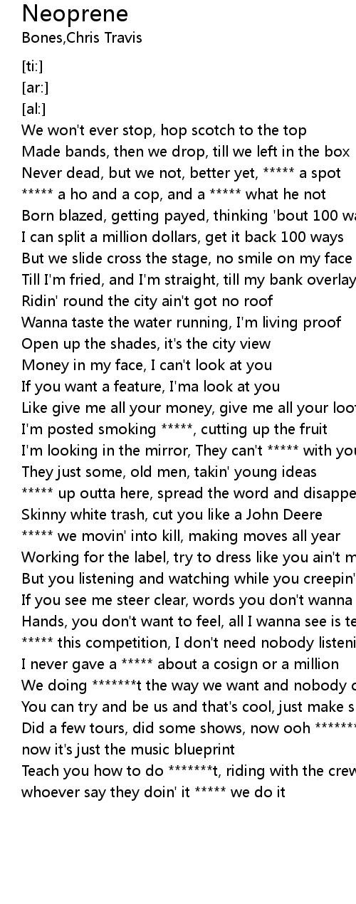 | [02:18.71] | I never gave a ***** about a cosign or a million |