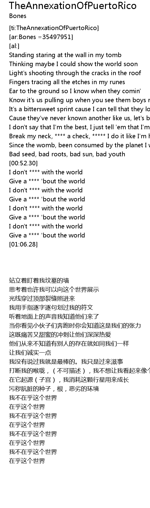 | [00:45.94] | Since the womb, been consumed by the planet I was grew |