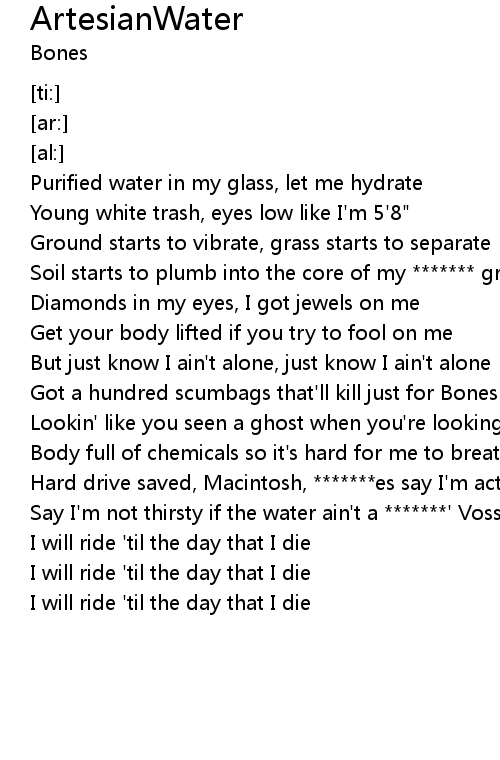 | [01:08.39] | Say I'm not thirsty if the water ain't a *******' Voss |