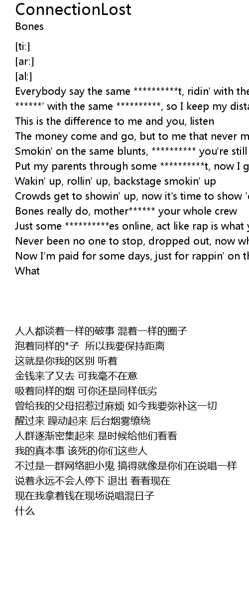 | [00:46.19] | Bones really do, mother****** your whole crew |