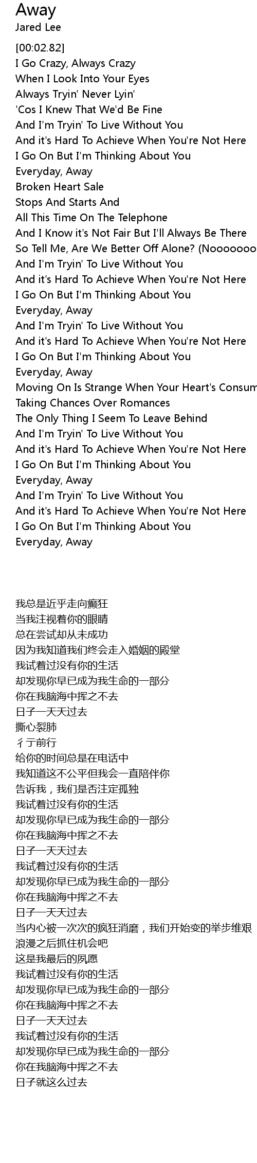 | [02:44.45] | And it's Hard To Achieve When You're Not Here |