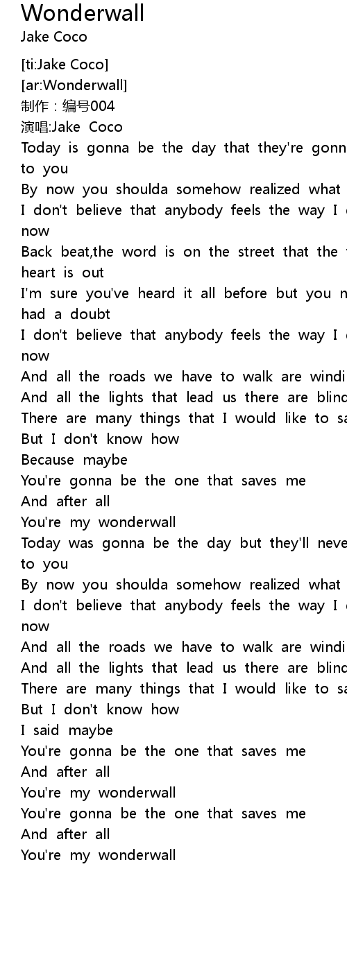 | [02:04.45] | You're my wonderwall |