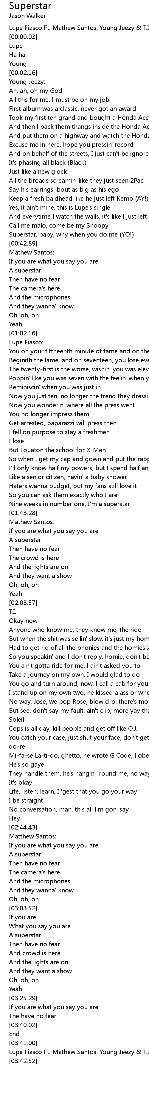 Lupe Fiasco Ft. Mathew Santos, Young Jeezy & T.I. - Superstar (Remix) |