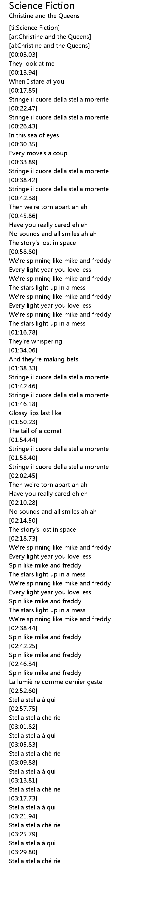 | [03:02.47] | Stella stella a qui |