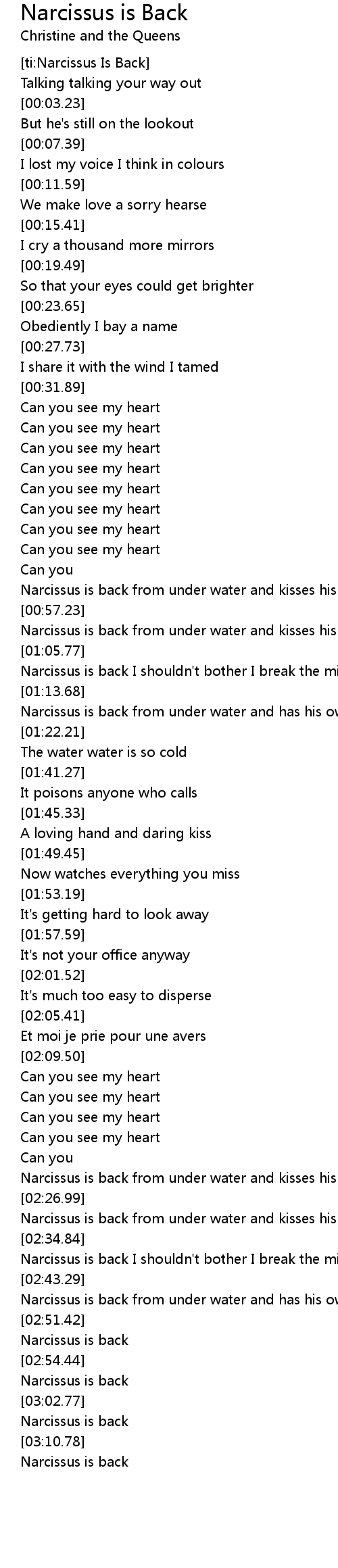 Narcissus is back I shouldn't bother I break the mirrors that I meet |