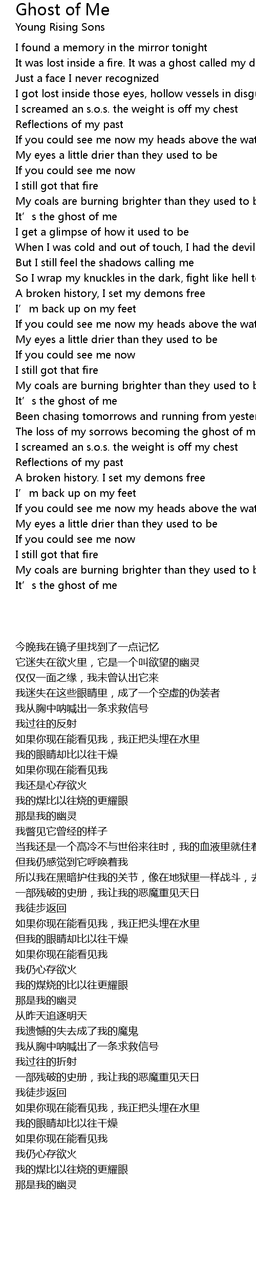 | [00:15.71] | It was lost inside a fire. It was a ghost called my desire |