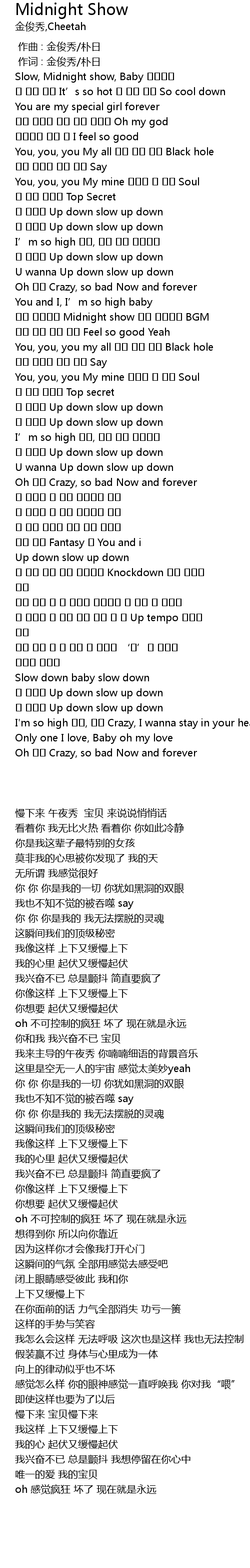 | [00:02.980] | Slow, Midnight show, Baby |