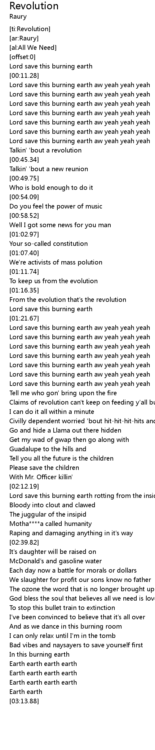 [01:28.69] Lord save this burning earth aw yeah yeah yeah