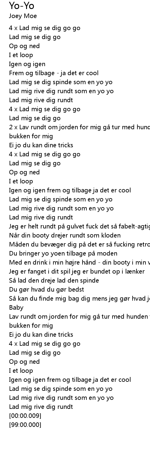 | [02:59.31] | Lad mig rive dig rundt som en yo yo |