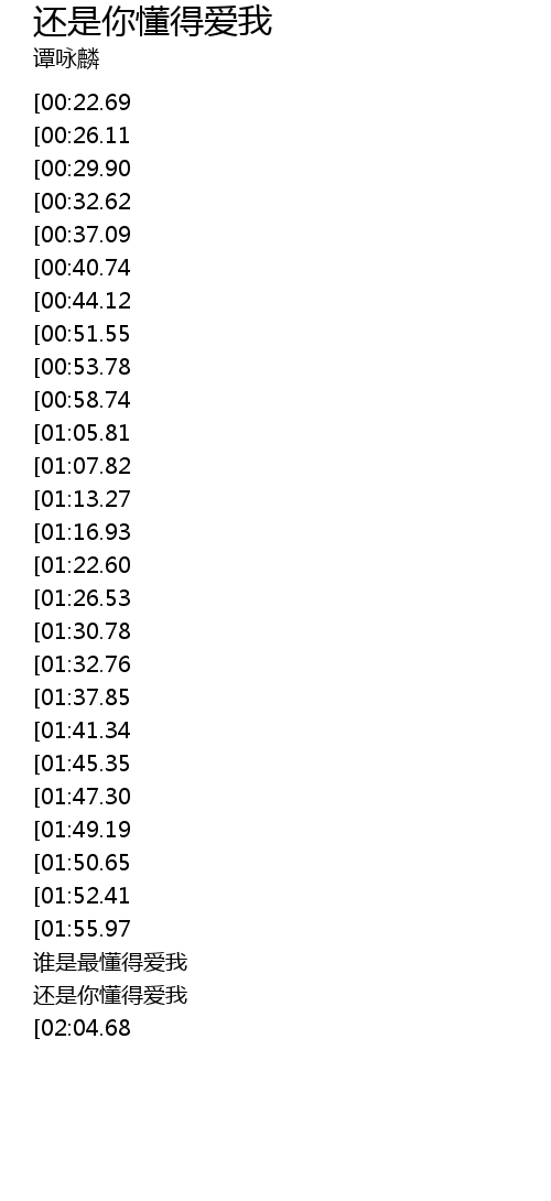 | [03:00.60][01:07.82] | 终于不知不觉发现你才明白我 |