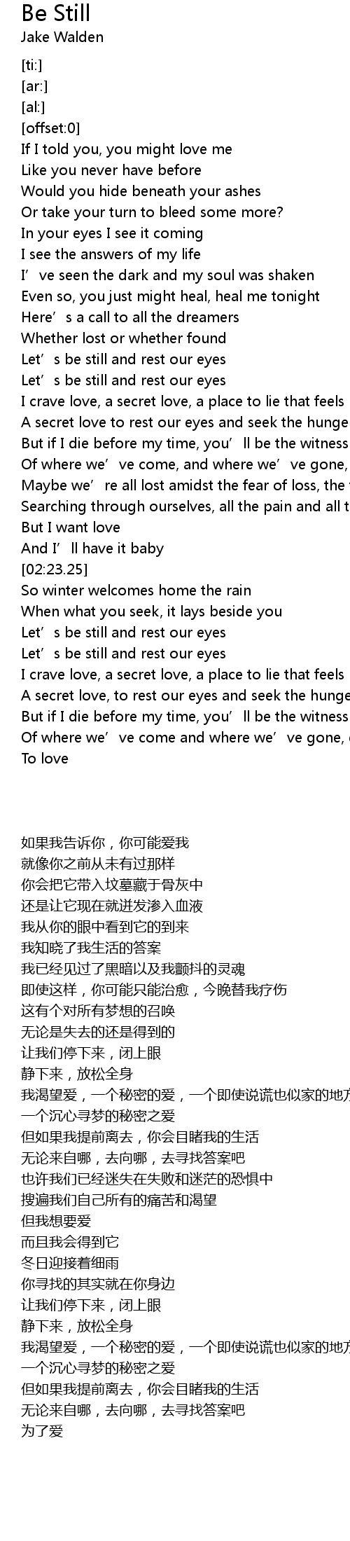 | [01:41.33] | A secret love to rest our eyes and seek the hunger |