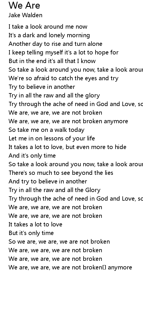 | So we are, we are, we are not broken | |