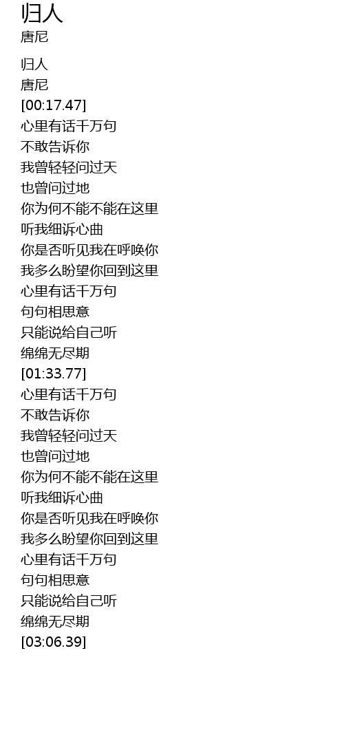 | [00:23.38] | xīn lǐ yǒu huà qiān wàn jù |