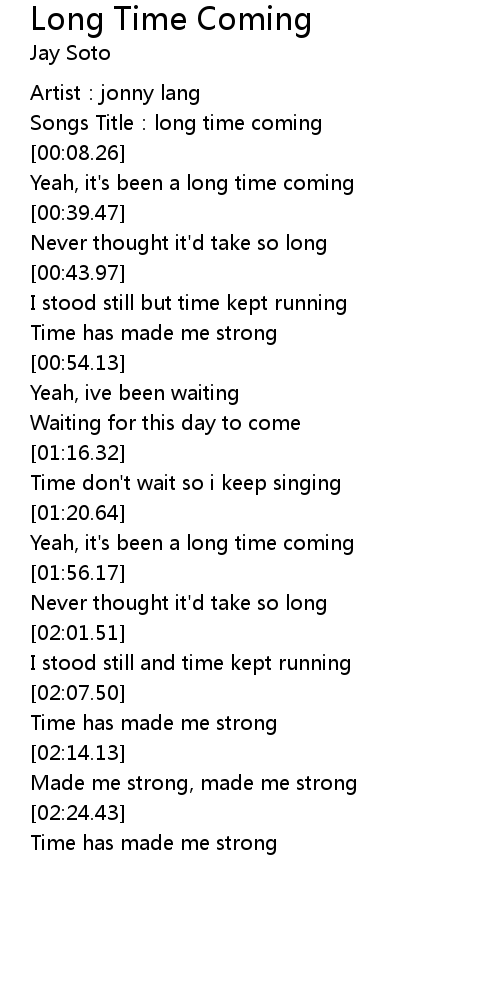 | [00:05.28] | Songs Title:long time coming |