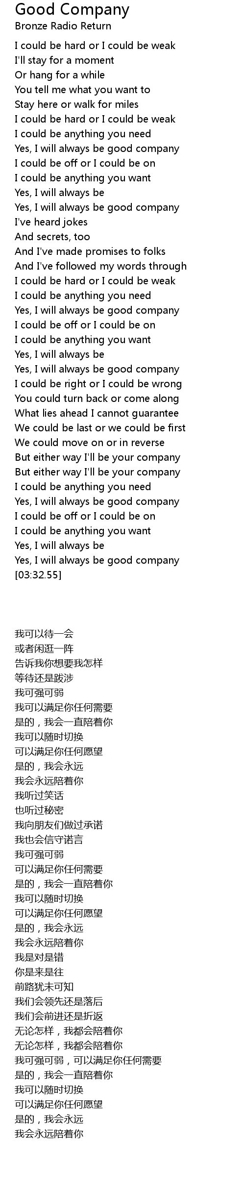 Yes, I will always be good company |