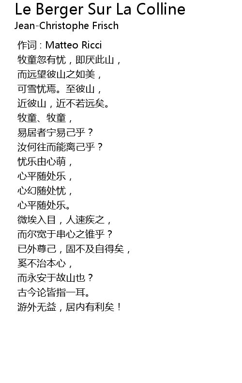 | [00:00.000] | 作词 : Matteo Ricci |